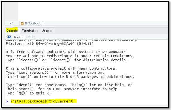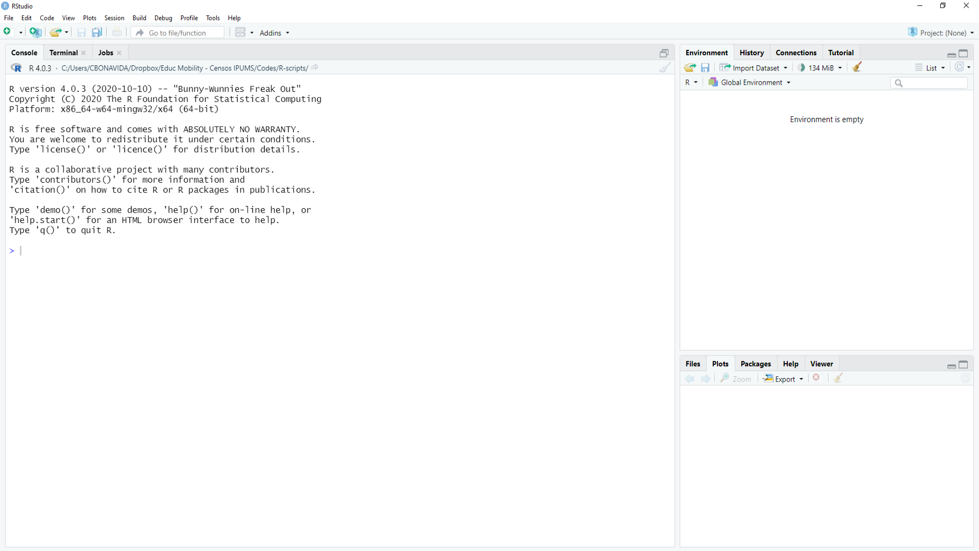 Una vez instalado el programa, ya podemos instalar paquetes específicos. Para esto simplemente copien y peguen esto en la consola (panel abajo a la izquierda)